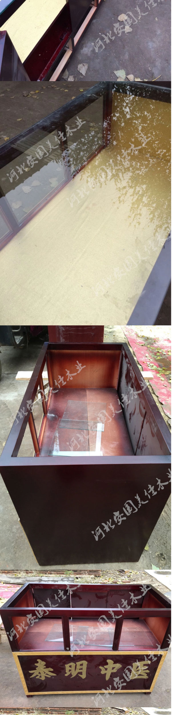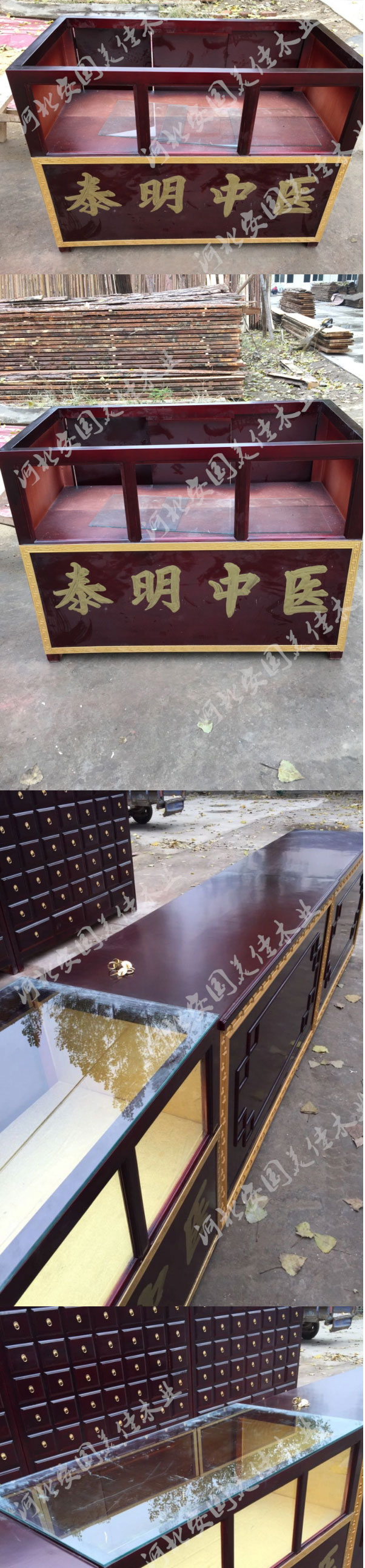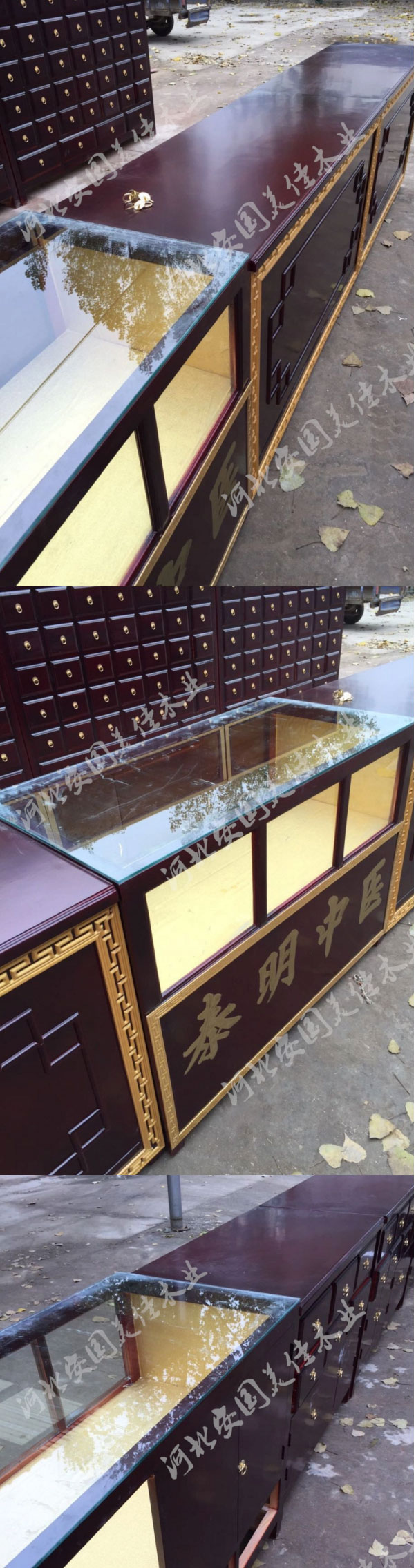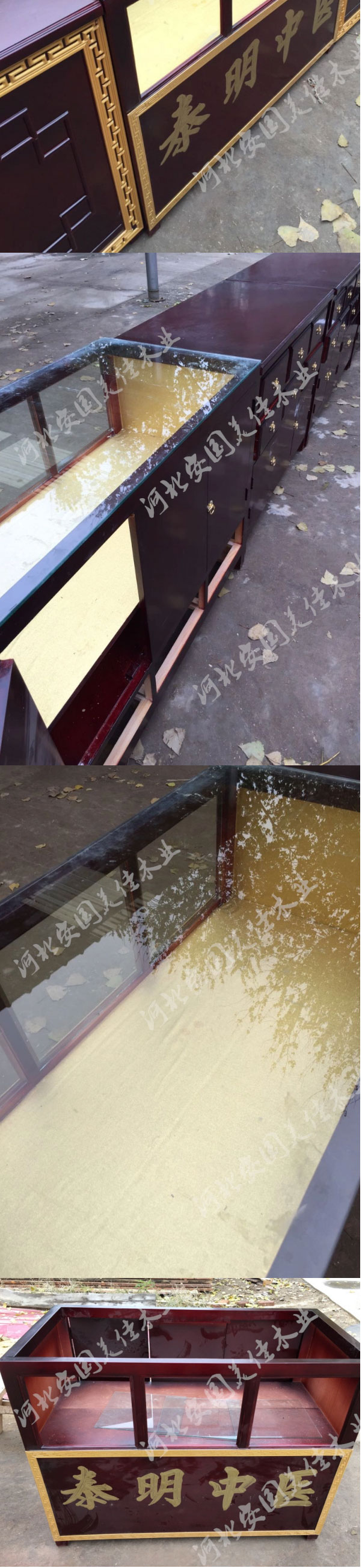 中藥柜展示臺用料---框架和抽屜選用優質樟松木,抽屜下面有五合板封底,防串味,抽屜底選用七合板,中藥柜的后背兩側頂部選用七合板。