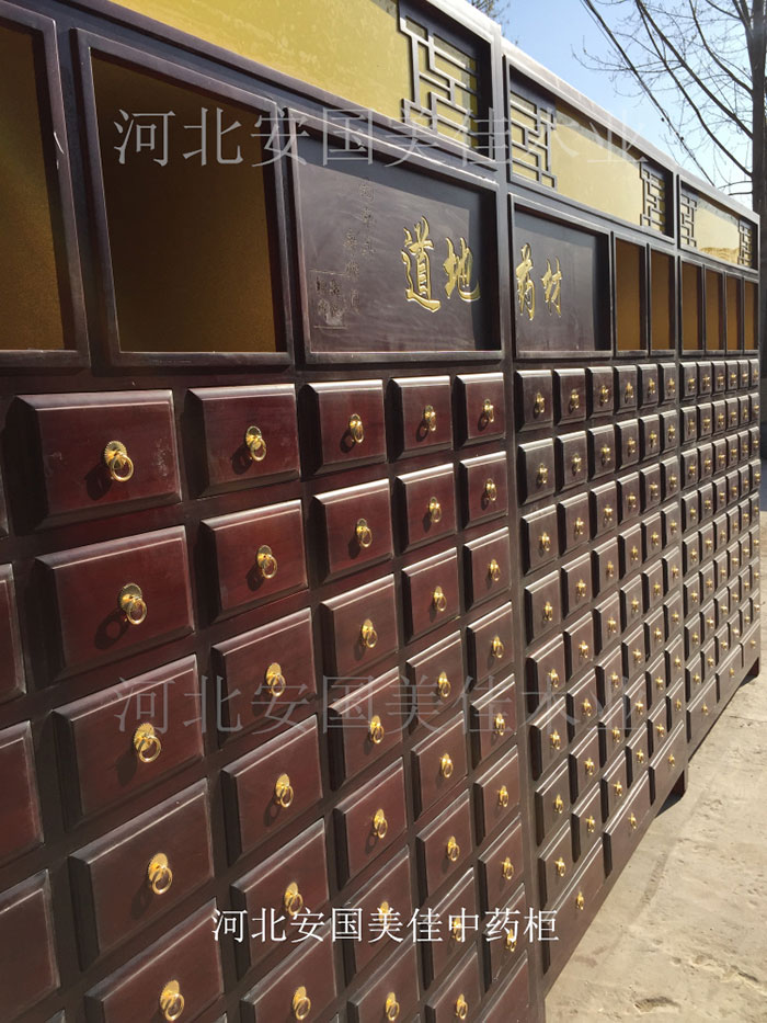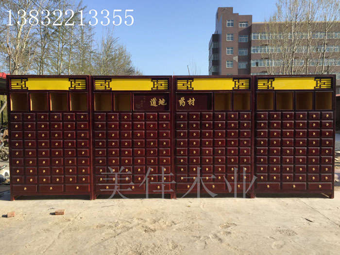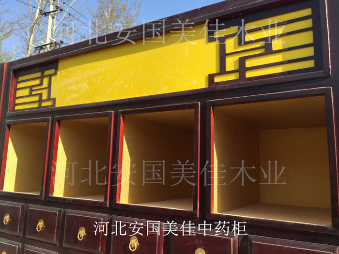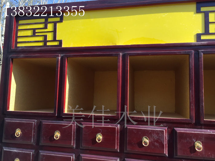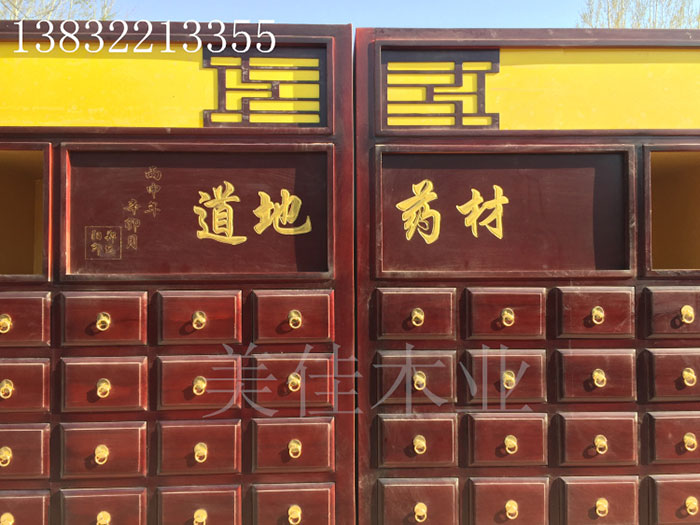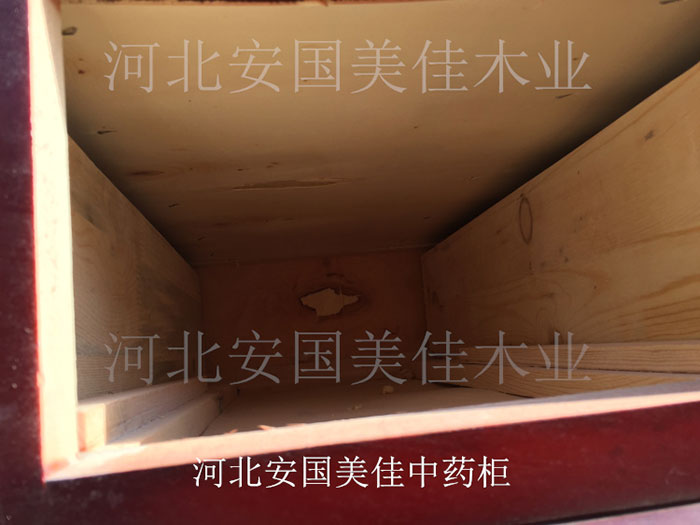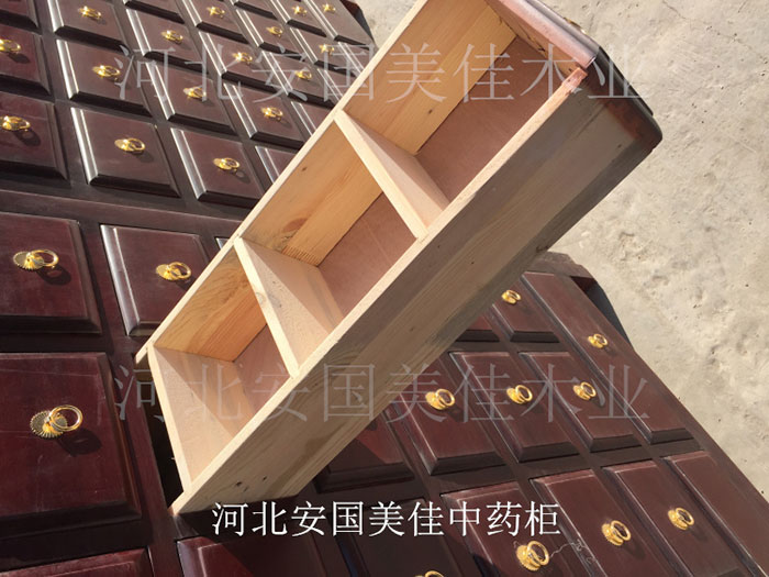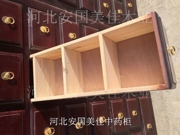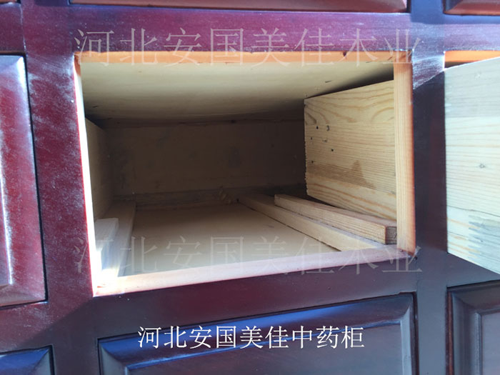 中藥柜用料---框架和抽屜選用優(yōu)質(zhì)樟松木,抽屜下面有五合板封底,防串味,抽屜底選用七和板,中藥柜的后背兩側(cè)頂部選用五合板。