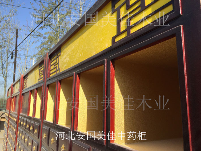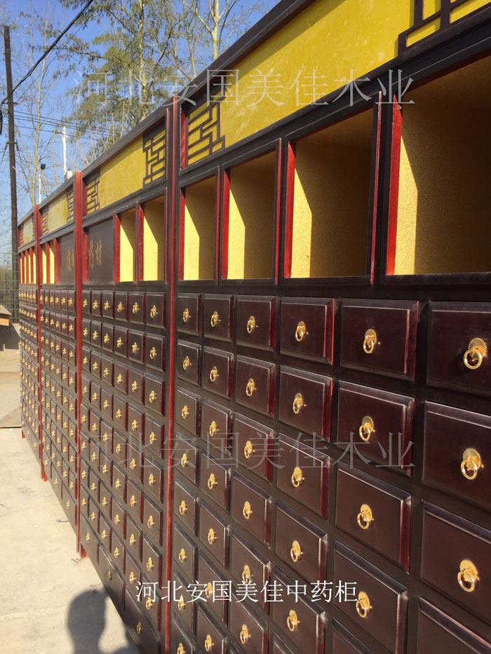 中藥柜顏色---經(jīng)典亮光酒紅色烤漆。 中藥柜用漆---亮光或者半啞環(huán)保聚脂漆水房烤漆。