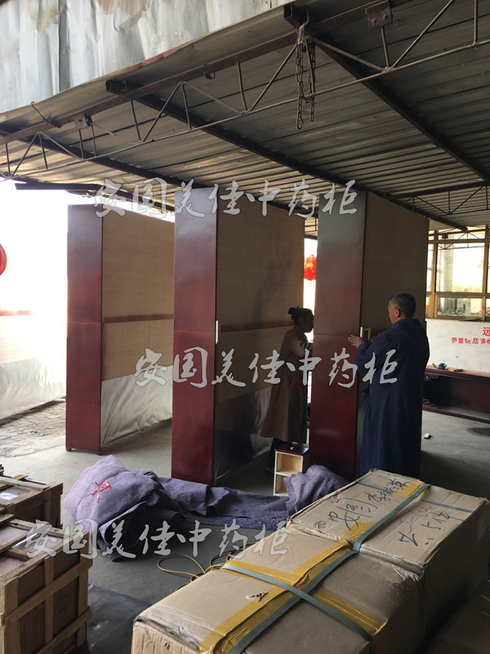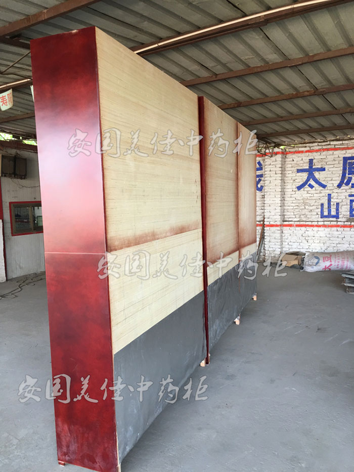 中藥柜顏色---經(jīng)典仿紅木色啞光花紋烤漆。 中藥柜用漆---亮光或者半啞環(huán)保聚脂漆水房烤漆。